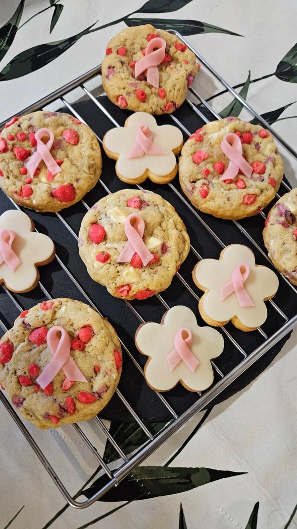 C'est pour cela que durant tous le mois d'octobre pour tout achat de Cookies aux framboises chocolat blanc ou Pralines chocolat blanc, et/ou un sachet de 4 biscuits octobre rose 🎗🎀 à 4€ = 1€ sera reversé à cette association!